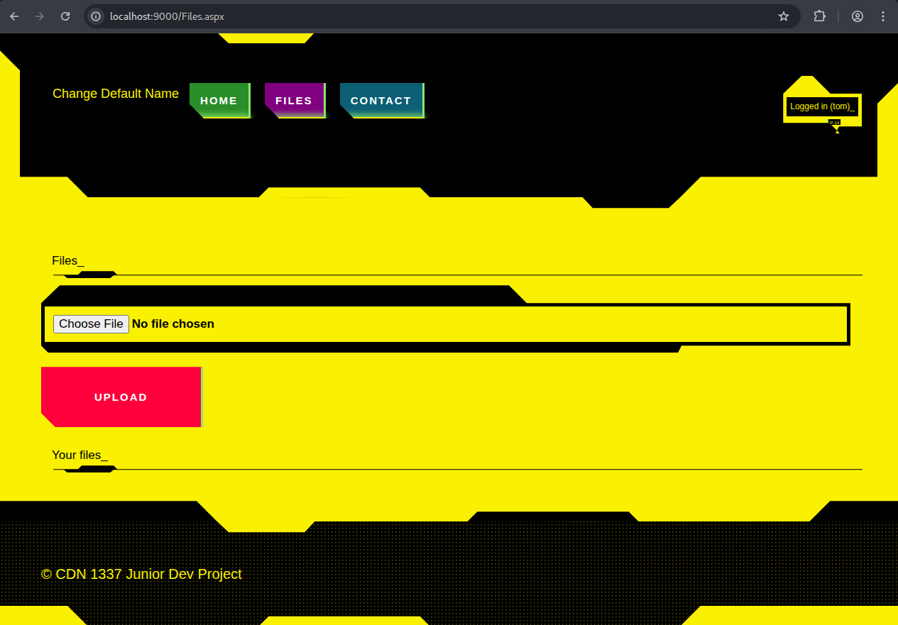We can now create an account (REGISTER) and log in. When logged in we can upload a file (FILES).